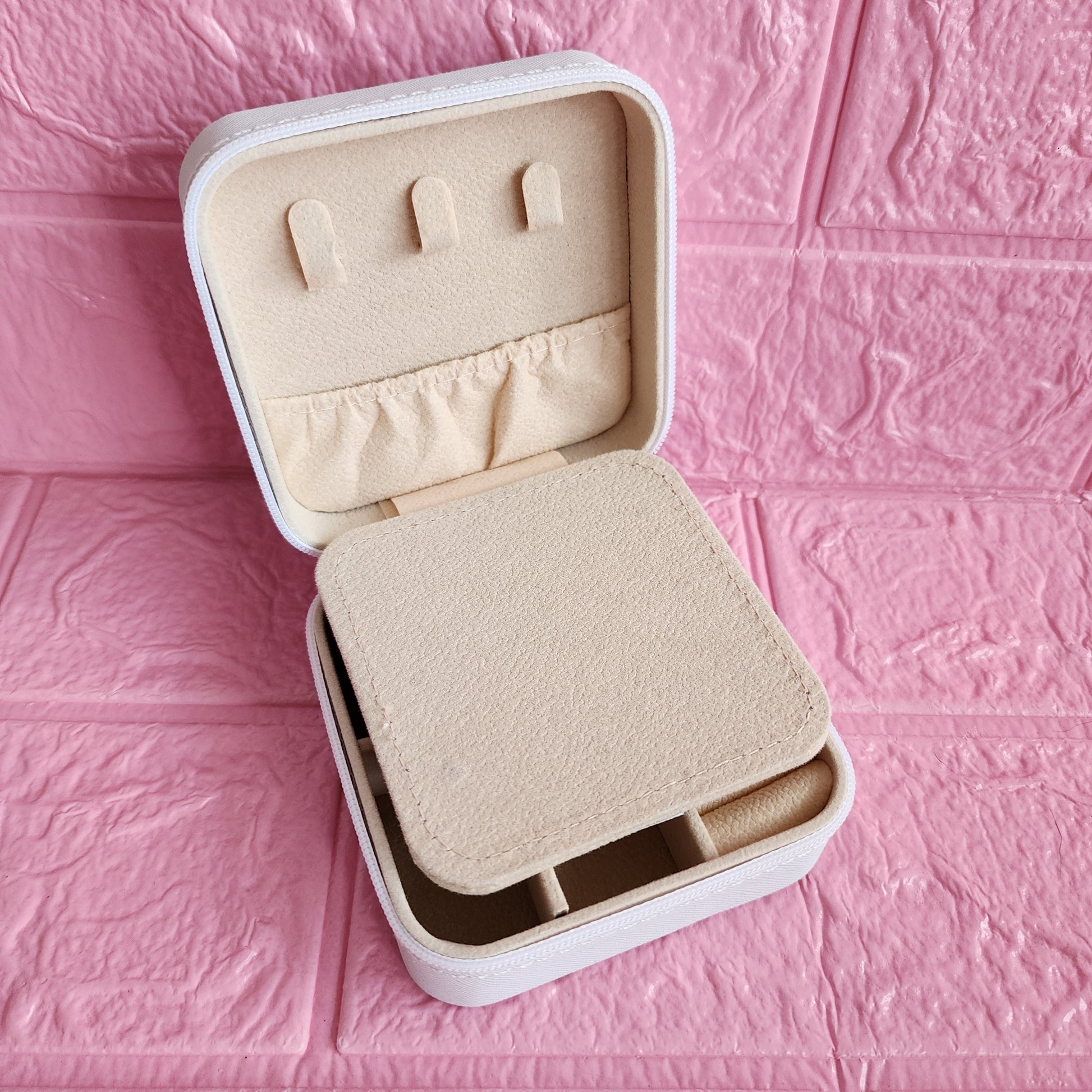 Joyero mediano 9x9cm en material cuerina e interior en felpa.